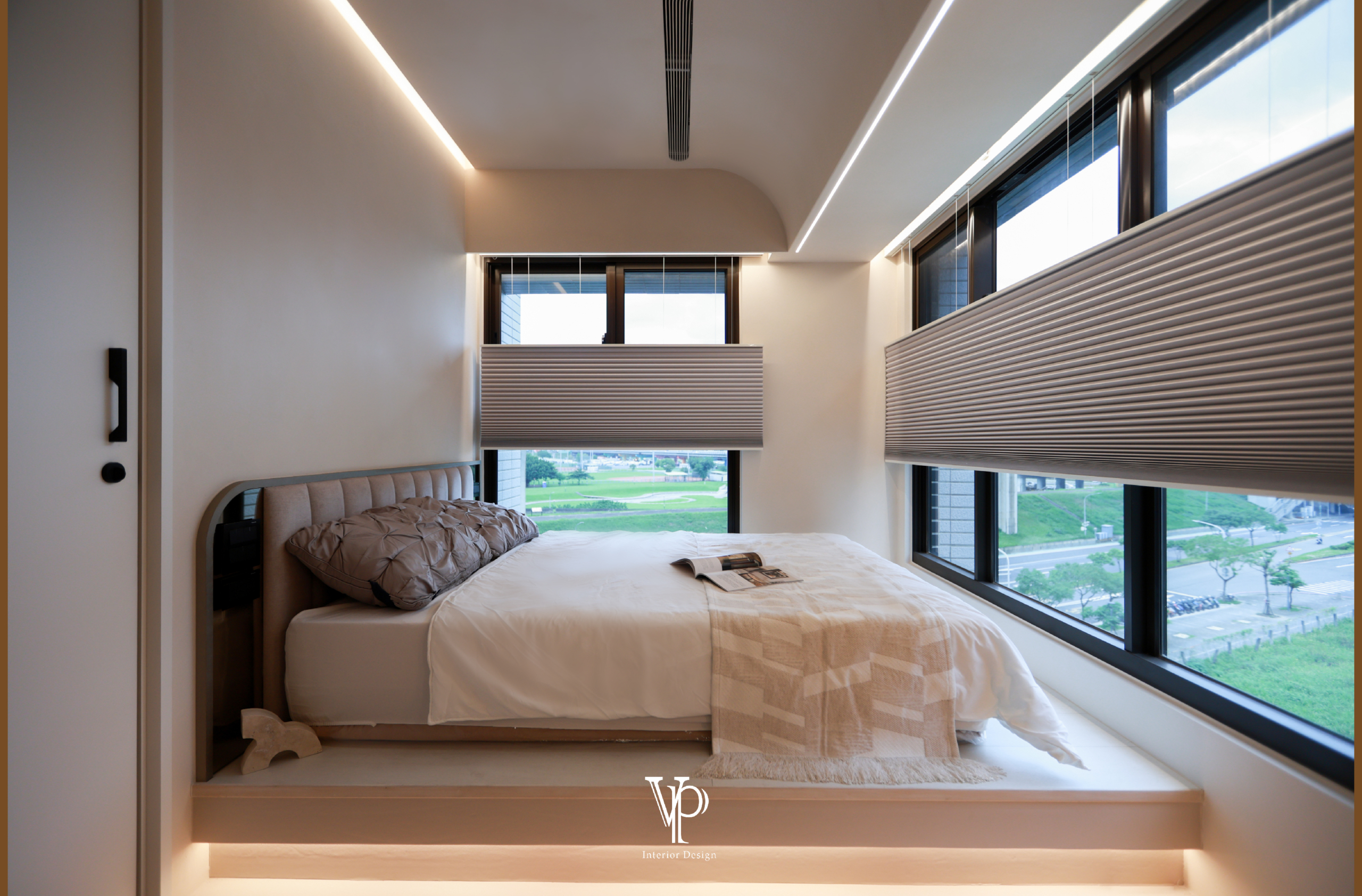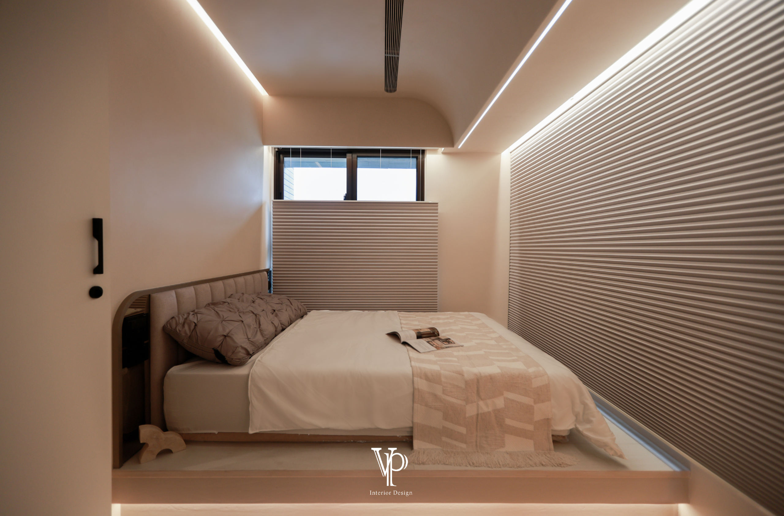 本案為19坪的現代極簡居宅,透過格局重整與材質語彙的統一,重新梳理生活的節奏與空間的呼吸感。將原始三房配置調整為一間舒適主臥、一間儲藏室,以及一處以架高地板與玻璃滑門圍塑的多功能空間,使有限坪數轉化為更具彈性與自由度的日常場域。